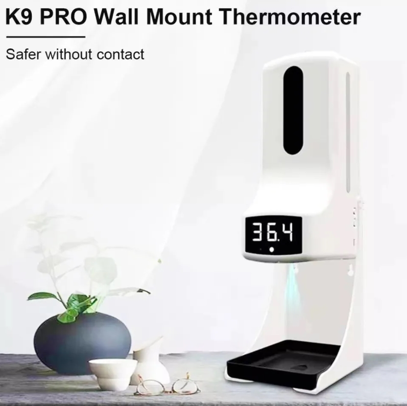 Esta versión Pro del termómetro dispensador K9, mejora la experiencia de sanitización de manos utilizando alcohol Gel. También incrementa su versatilidad de uso, ya que por una parte añade la posibilidad de funcionar con 4 pilas AA, y por otra, es que se puede usar sin fijación sobre escritorios o mesas, siendo así no estrictamente necesario montarlo sobre un trípode o pared.